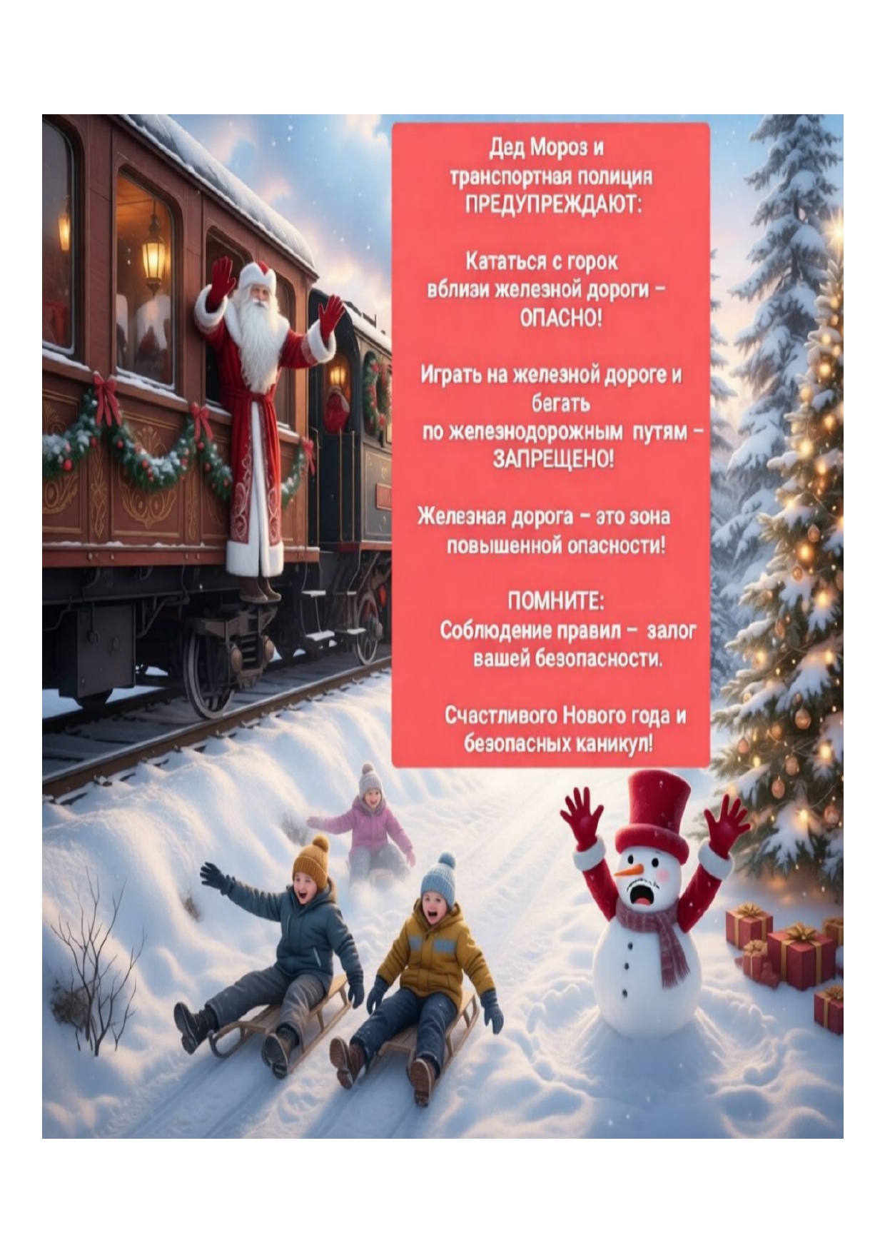 Дед мороз предупреждает! Играть на железной дороге опасно!